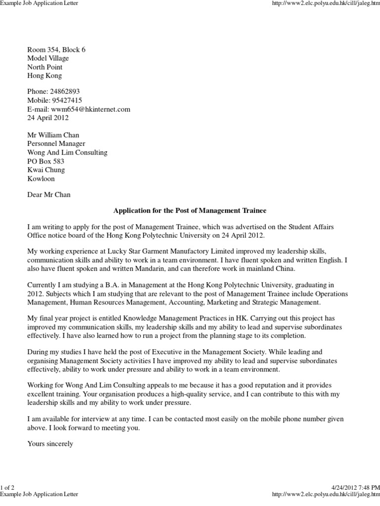 Take cues from these job application letter samples to get the word out. A job application letter can impress a potential employer and set you apart from other applicants. Open with a strong, declarative statement that informs your reader be short and specific with what attracted you to the job. We never know how businesses select their new hires. In most application letter examples, you also enumerate reasons with explanations about your interest in the position you want which requires all of your relevant as an applicant, it's your job to solve this issue among other things.